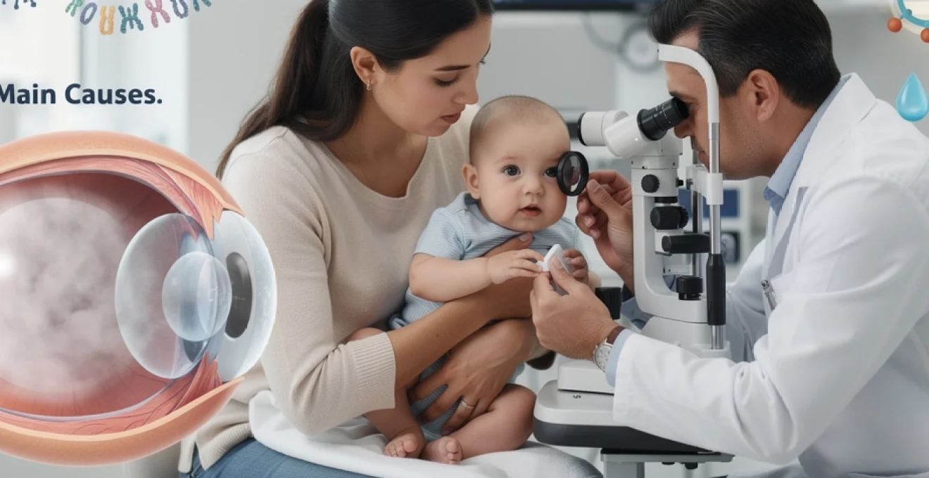 La cataracte congénitale représente l’une des principales causes de cécité évitable chez les nouveau-nés, touchant environ 3 enfants sur 10 000 naissances dans le monde. Cette opacification du cristallin présente dès la naissance ou apparaissant dans les premières semaines de vie nécessite une identification précoce pour préserver le développement visuel normal de l’enfant. Contrairement à la cataracte sénile qui résulte du vieillissement naturel, la cataracte congénitale découle de multiples facteurs complexes impliquant des anomalies génétiques, des infections maternelles ou des troubles métaboliques survenant pendant la grossesse.